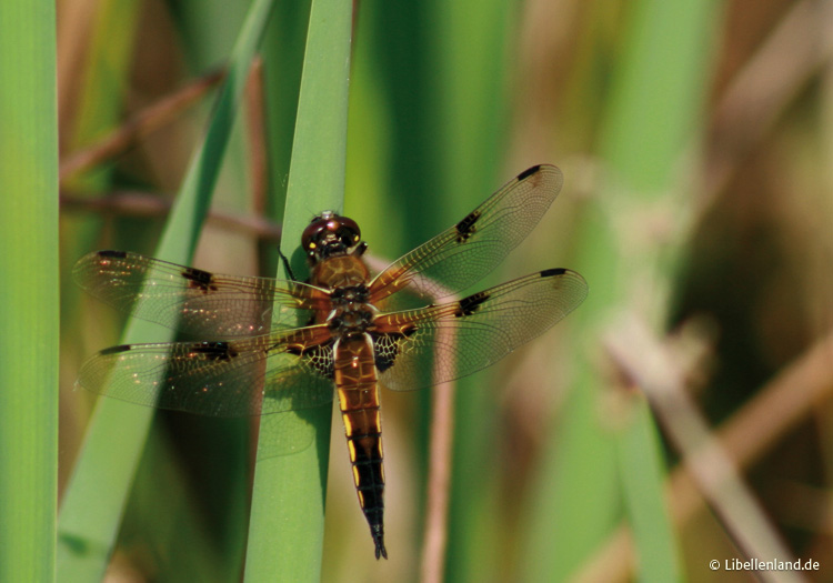Zu den Libellenarten, die an fast allen Stillgewässern vertreten sind, gehören die Große Königslibelle (Anax imperator, s. großes Foto), der Große Blaupfeil (Orthetrum cancellatum) und der Vierfleck (Libellula quadrimaculata). Dazu gesellen sich verschiedene Kleinlibellenarten (Azurjungfern, Federlibellen, Adonislibellen) oder auch besondere Raritäten wie der Spitzenfleck (Libellula fulva), eine vom Aussterben bedrohte Großlibellenart, die nur mehr an sehr sauberen Stillgewässern mit naturnaher Ufervegetation lebt.